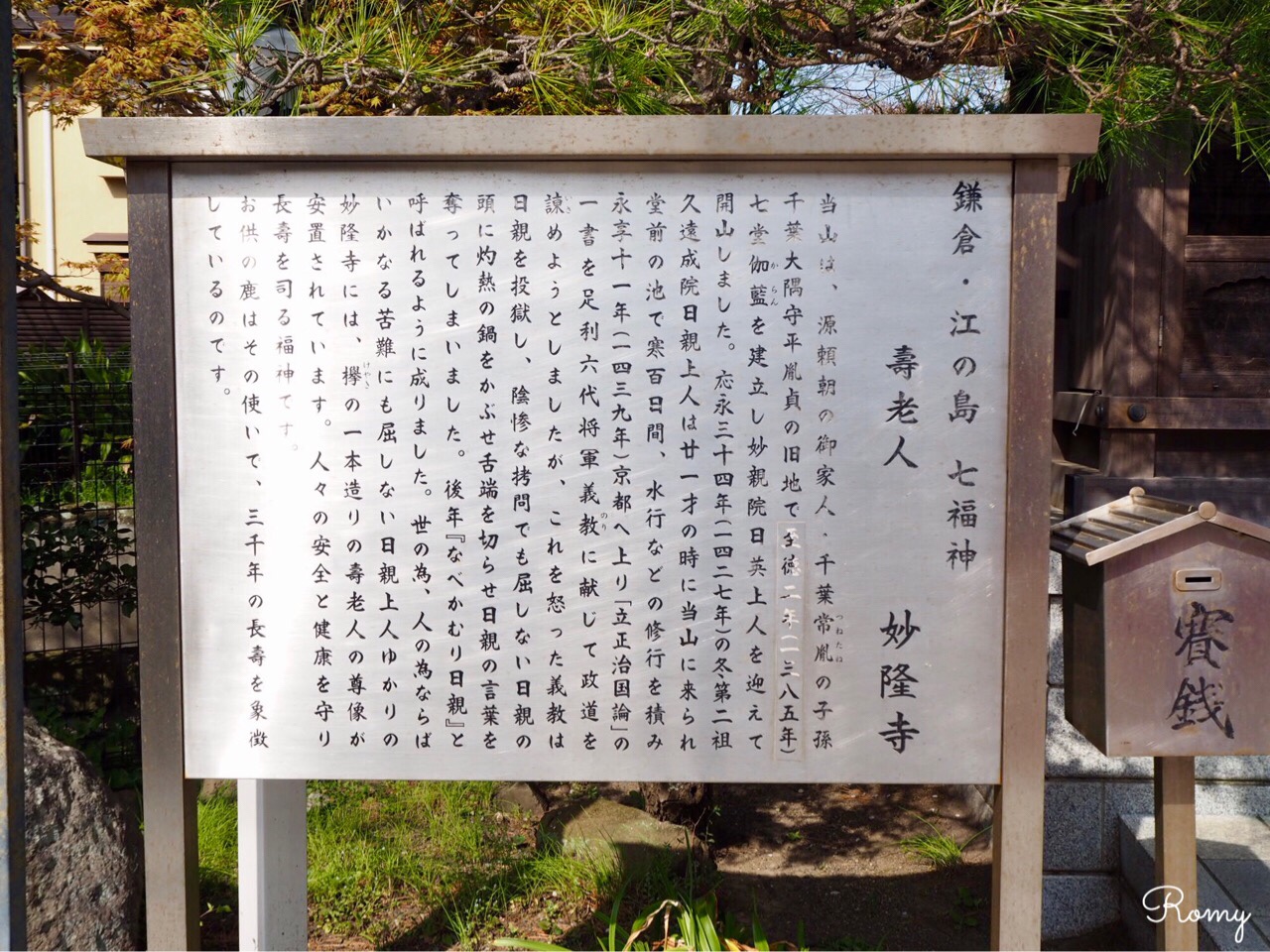 妙隆寺は日蓮宗のお寺で、「鎌倉江ノ島七福神」の一つなんです!