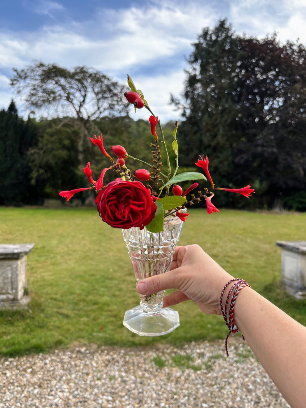 このフラワーアレンジメントはおそらく私が唯一しっかり参加できたもので、ワクワクしながら庭にある花々や植物を摘み、感性のままに活ける時間に癒された。