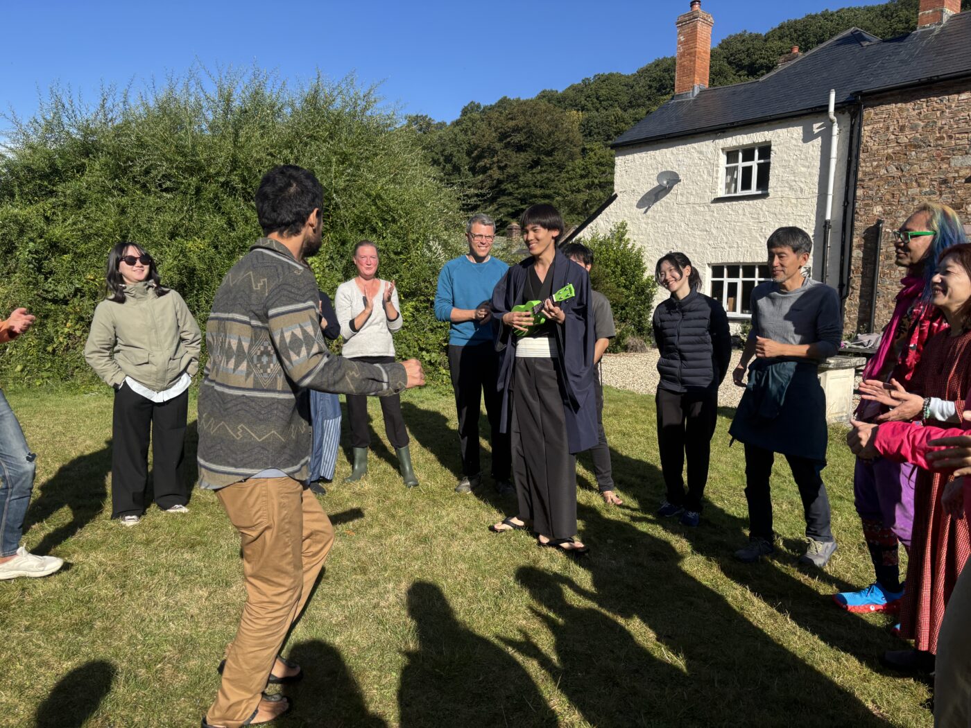 翌朝はまた天気に恵まれ、外でシューマッハカレッジでやったワークを再びやったり、海くんのファシリでDUP(Dances of Universal Peace)の歌と踊りを数曲みんなでやった。