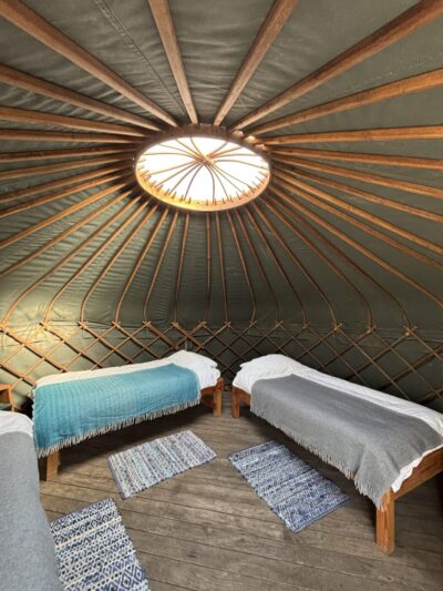 この温かさと、用意してくれたおやつを味わいながら、それぞれのヤート(yurt/小屋とテントの間みたいなもの)にチェックイン。かわいい!